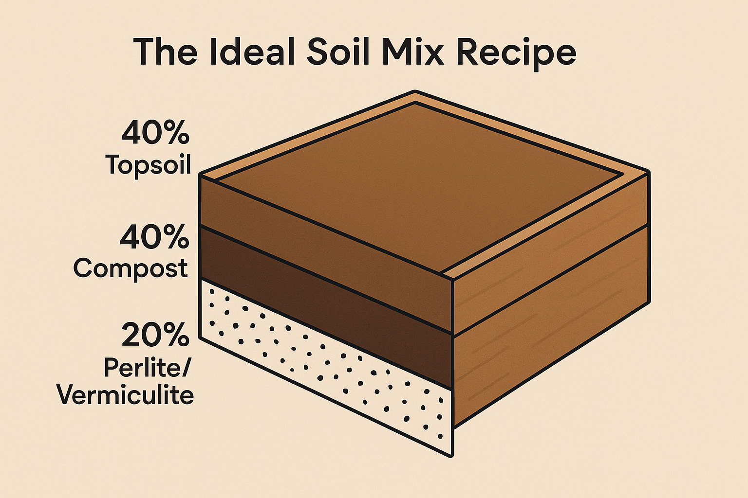 • Fill with a quality soil mix of compost, topsoil, and amendments for optimal plant growth